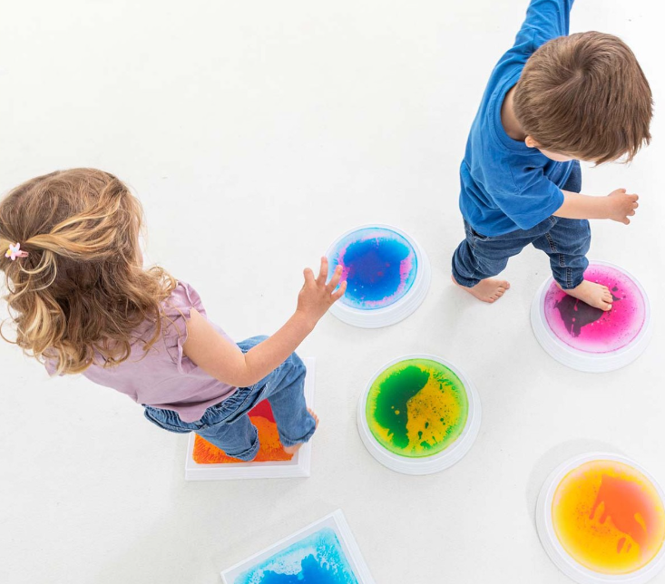 Las Piedras SensoriLED Cuadradas son un recurso visual y táctil que transforma cualquier suelo en un espacio interactivo. Al pisarlas o presionarlas con las manos, el líquido interno se desplaza creando formas dinámicas, mientras la iluminación LED potencia la estimulación visual.